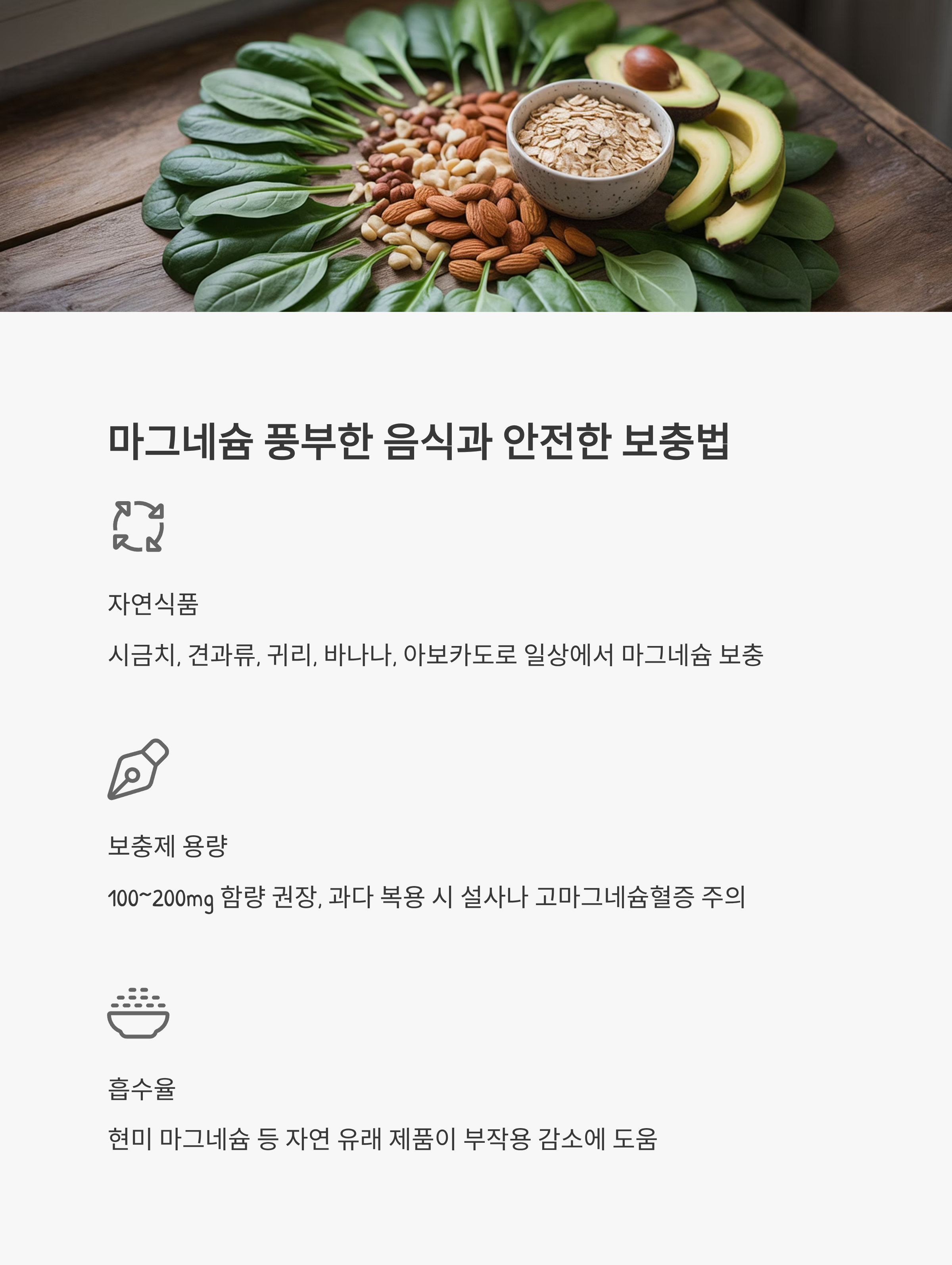 마그네슘은 매일 꾸준한 관리가 필요합니다. 아래 방법을 실천해보세요.