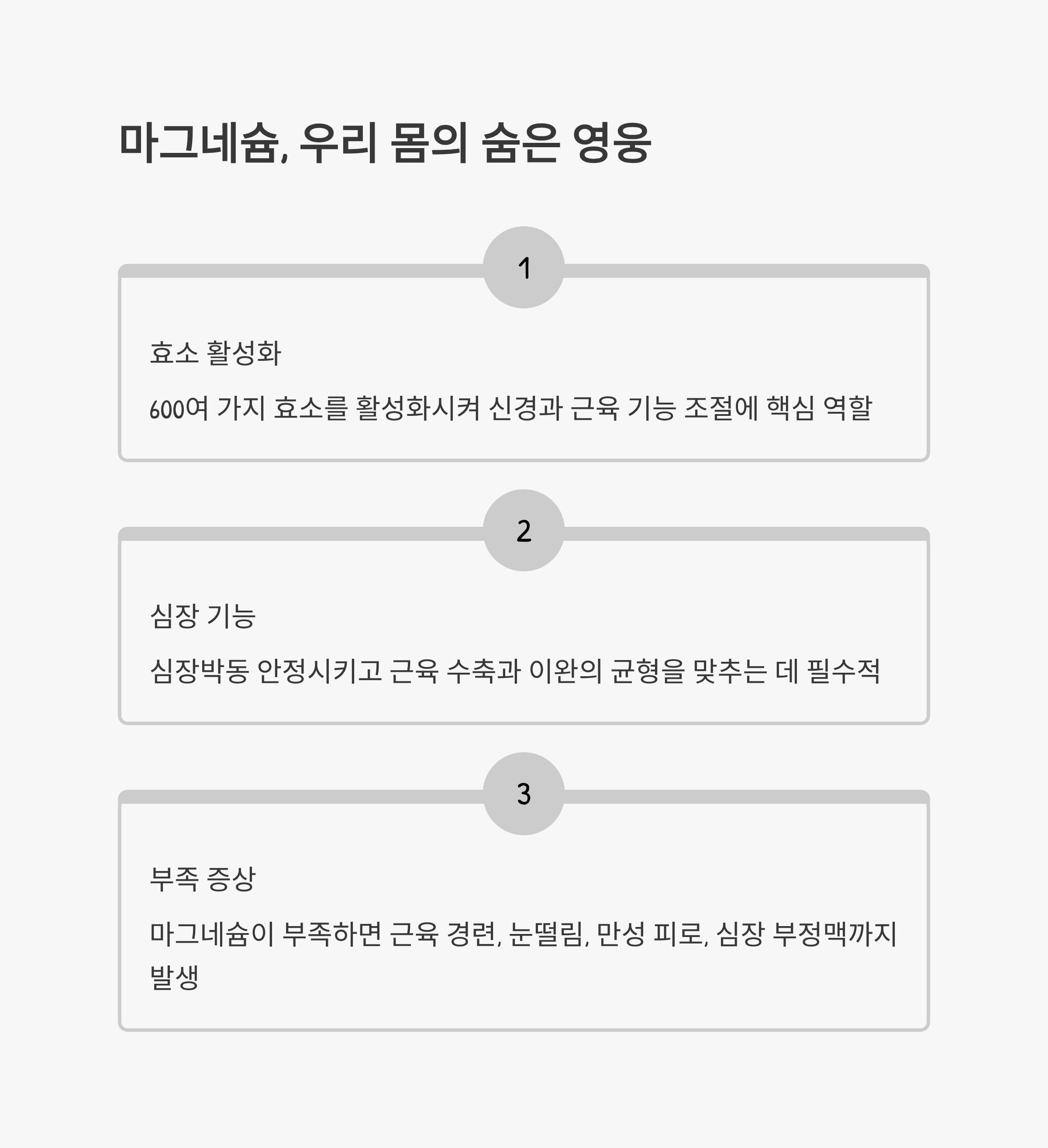 이처럼 마그네슘은 단순히 근육에만 국한되지 않고 심장, 뼈, 신경계, 에너지 대사에 이르기까지 광범위한 작용을 합니다.