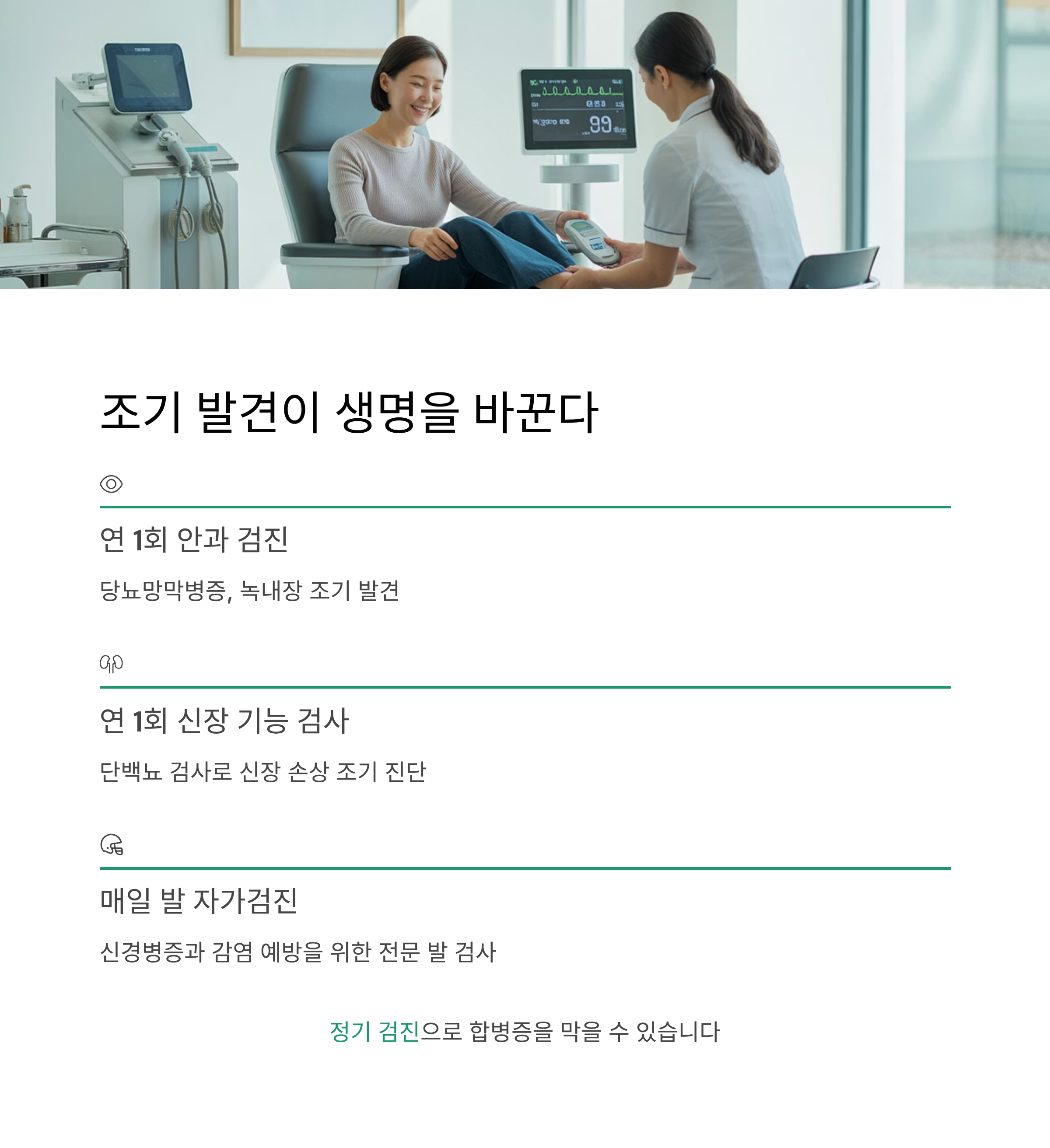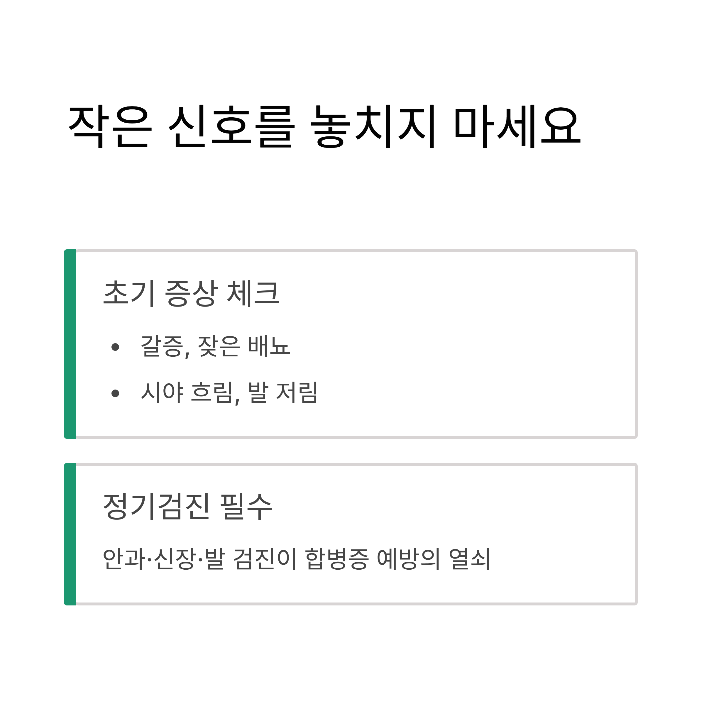 합병증은 조용히 진행되기 때문에 작은 변화를 놓치지 말아야 합니다.