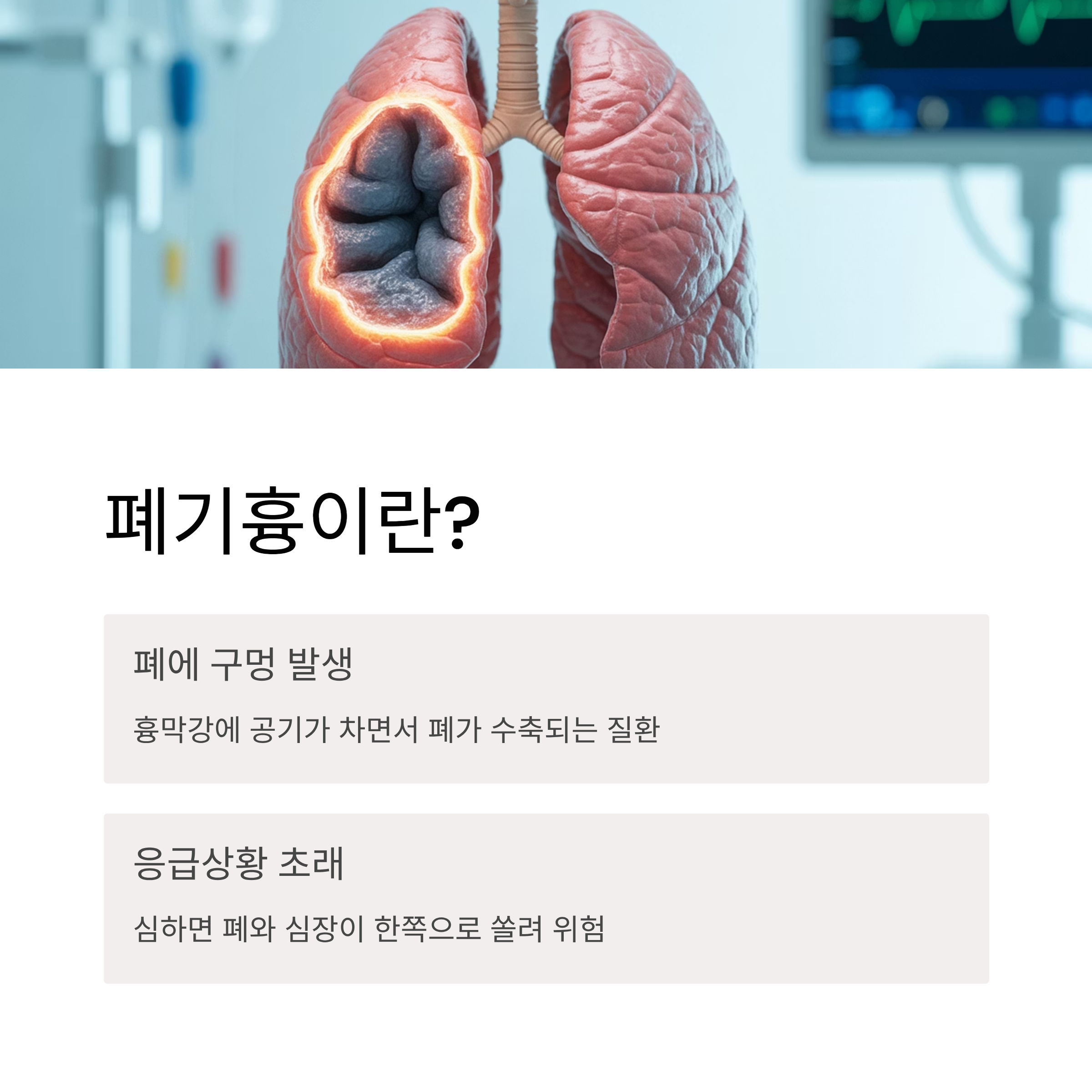 폐기흉은 젊은 층에서도 흔히 발생하는 흉부 질환으로, 갑작스러운 흉통과 호흡곤란을 일으키는 특징이 있습니다. 특히 평소 건강해 보이는 10~30대에게도 나타날 수 있어 주의가 필요합니다.