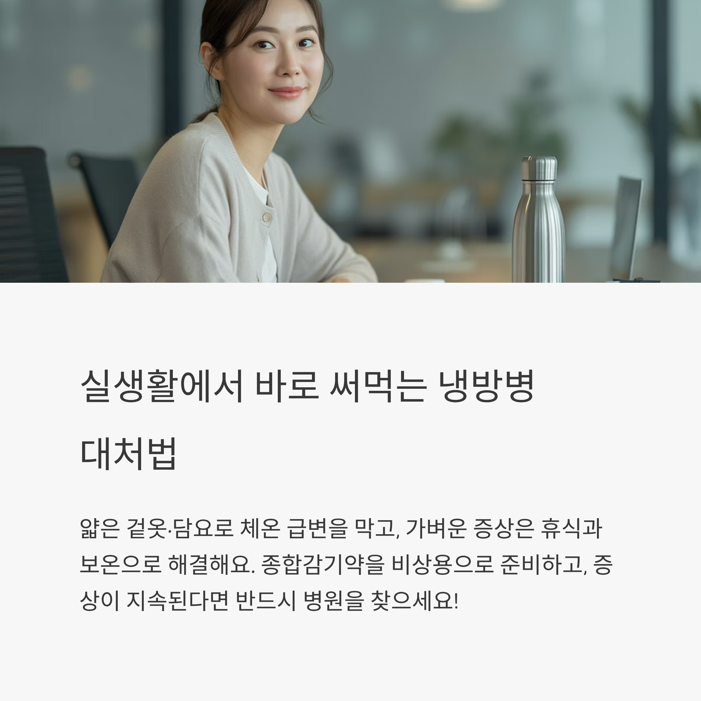 특히 여성, 노약자, 면역력이 약한 사람일수록 냉방병에 더 쉽게 걸리며, 감기처럼 느껴져 놓치기 쉽습니다.