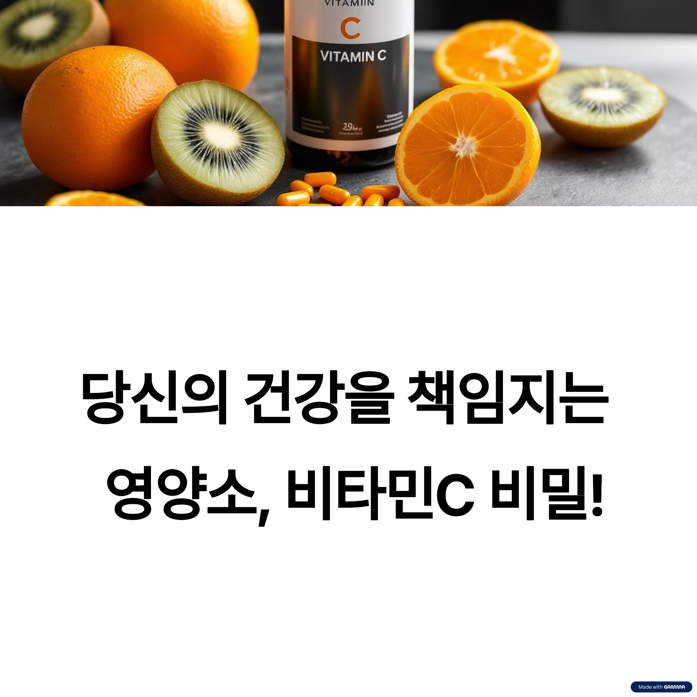 비타민C는 우리 건강을 지키는 중요한 영양소입니다. 면역력을 강화하고, 항산화 작용으로 세포 손상을 막아주며, 피부 건강에도 도움을 줍니다. 특히 요즘처럼 면역 관리가 중요한 시대에는 하루 한 알의 비타민C만으로도 건강을 지키는 데 큰 도움이 됩니다. 꾸준한 섭취와 올바른 생활 습관을 통해 더 건강하고 활기찬 삶을 만들어 가시길 바랍니다.