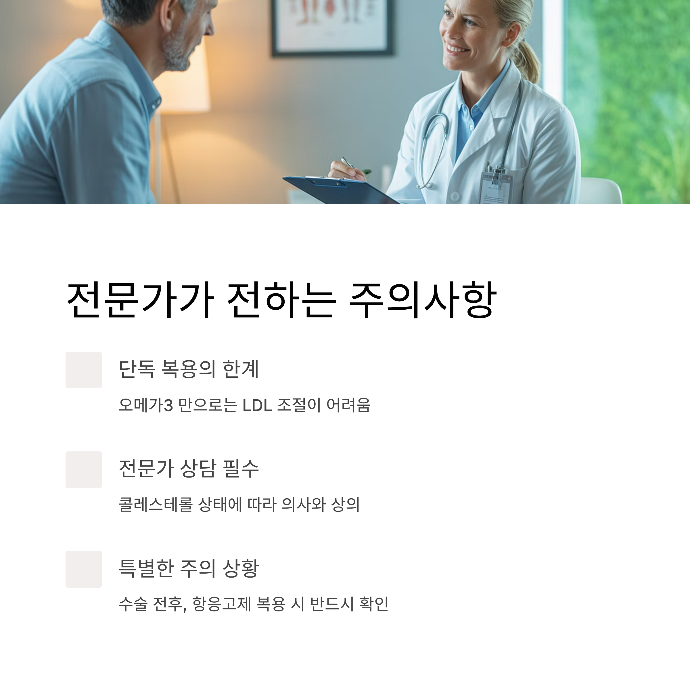 - 임신·수유부: DHA 중심 보충제 권장, 고용량 섭취는 피할 것